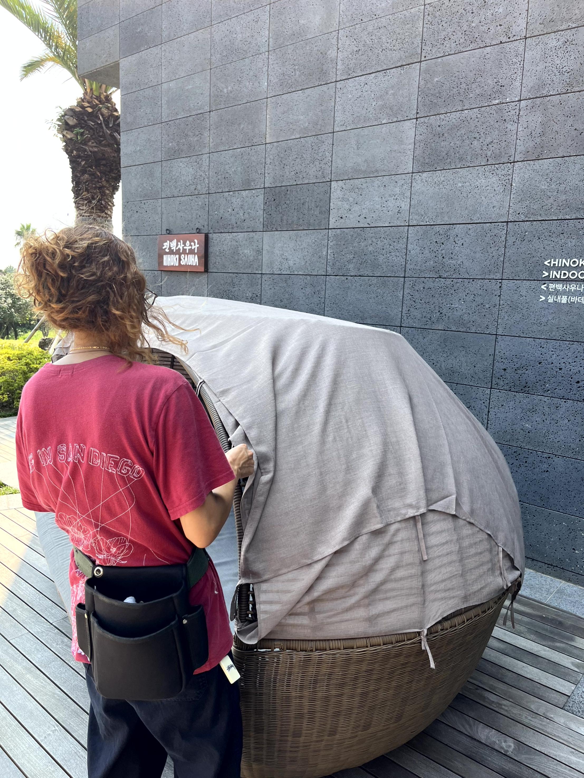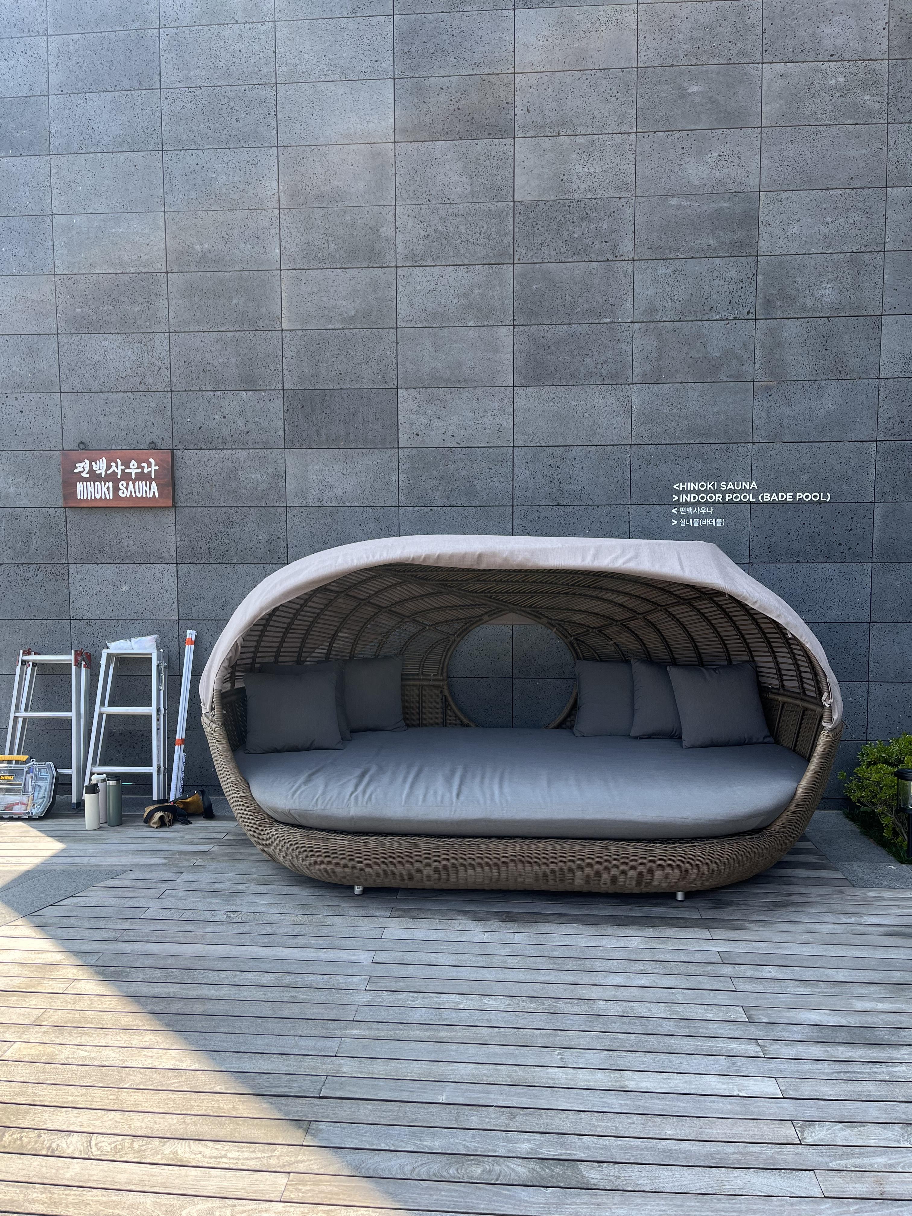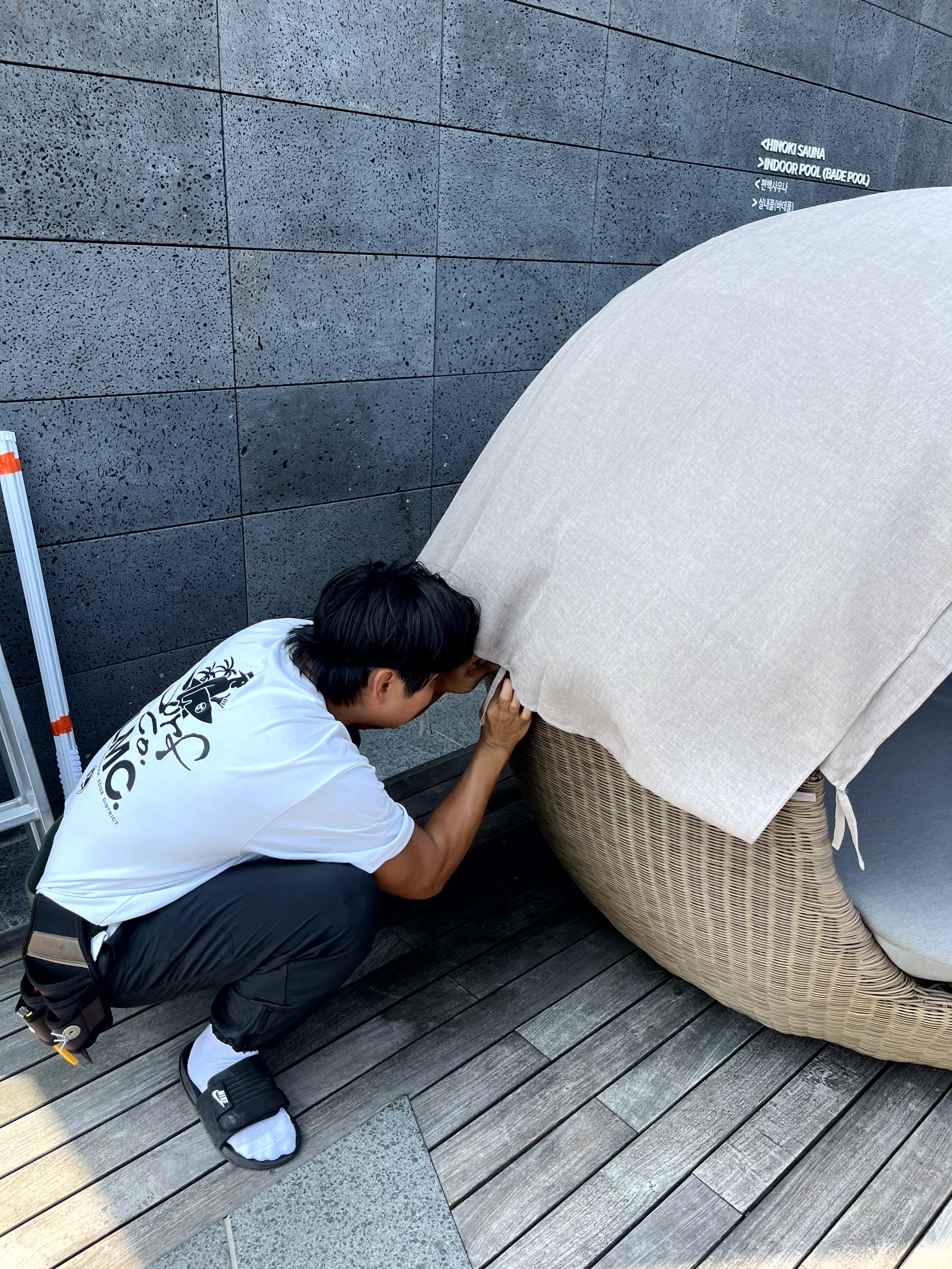 오레브 핫스프링앤스파 카바나 커튼 설치에 이어