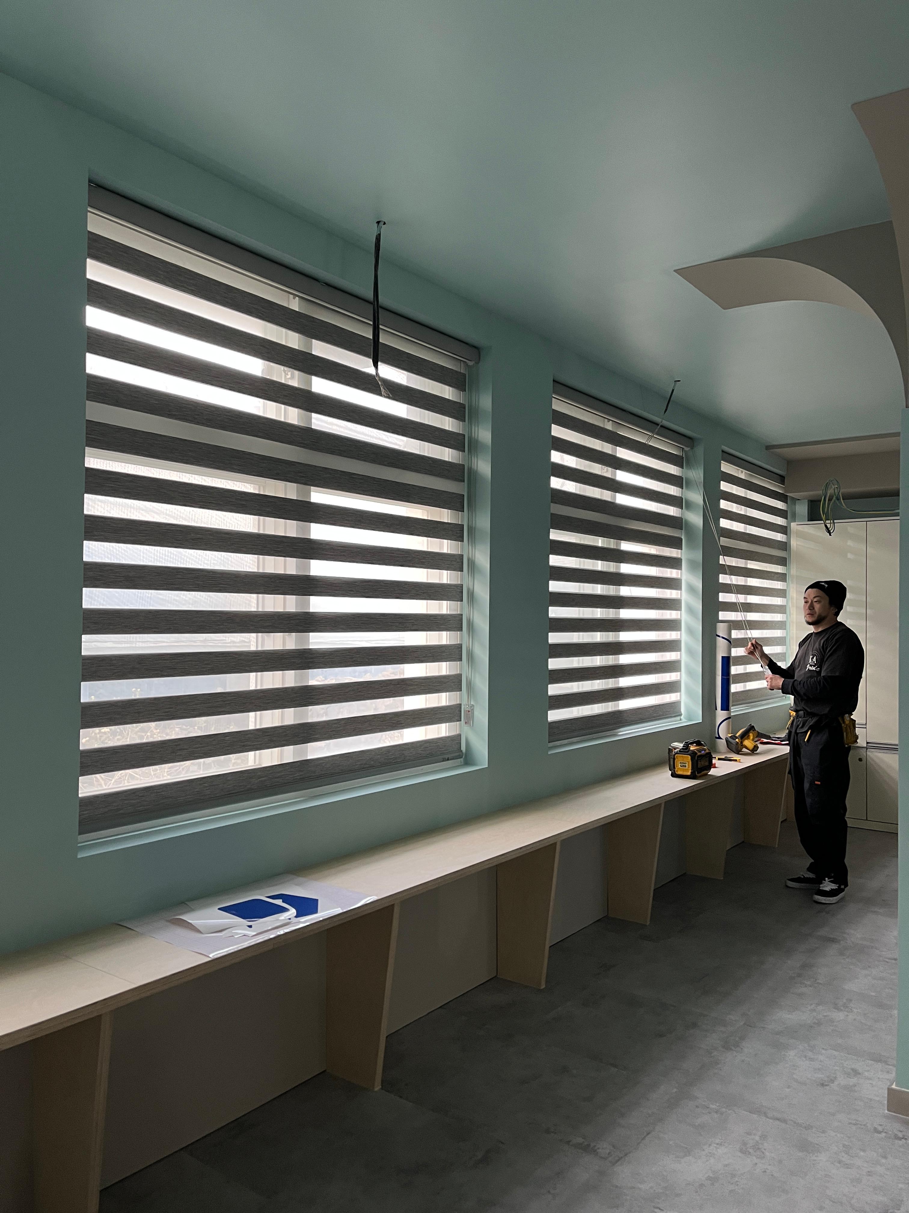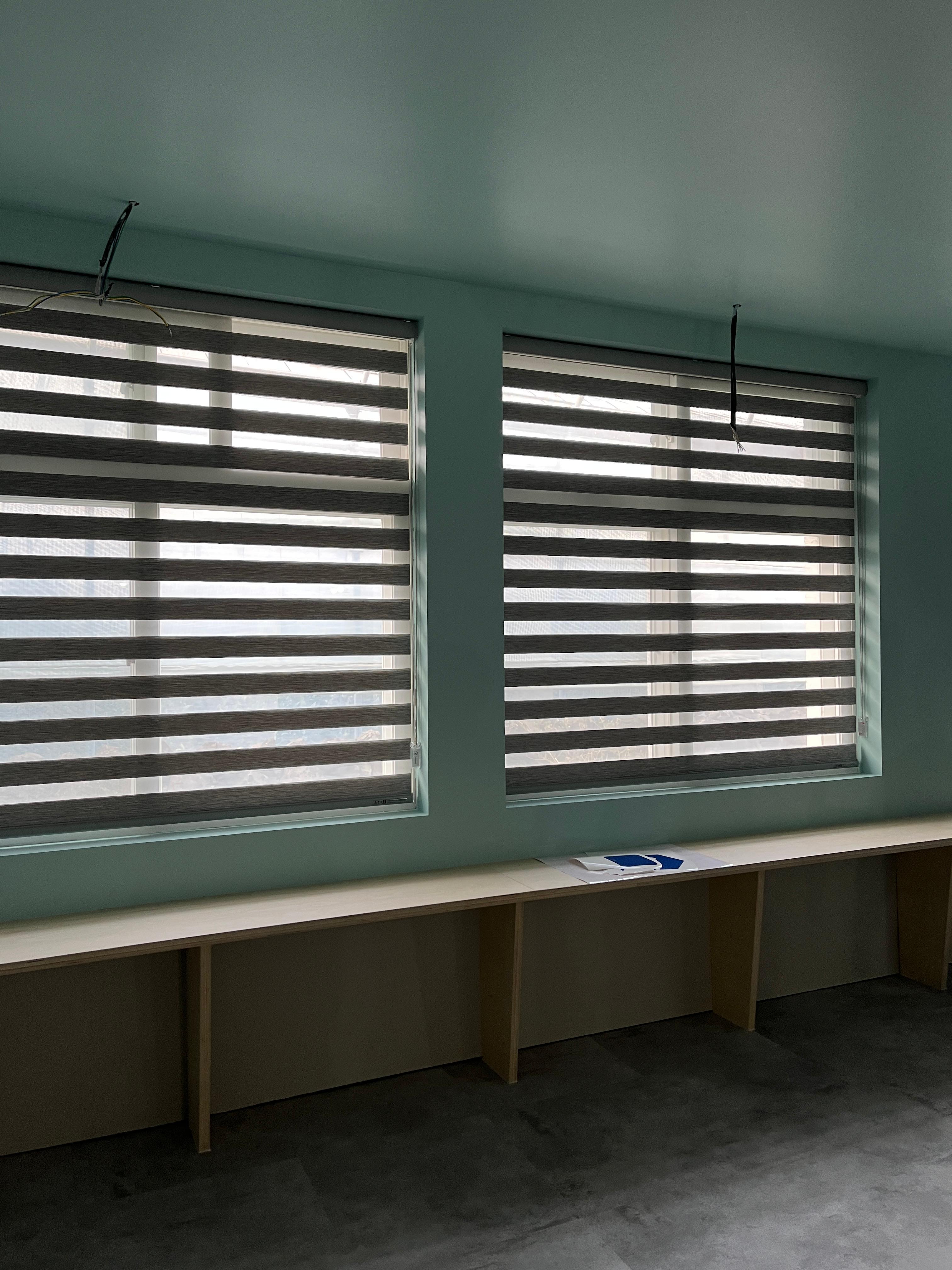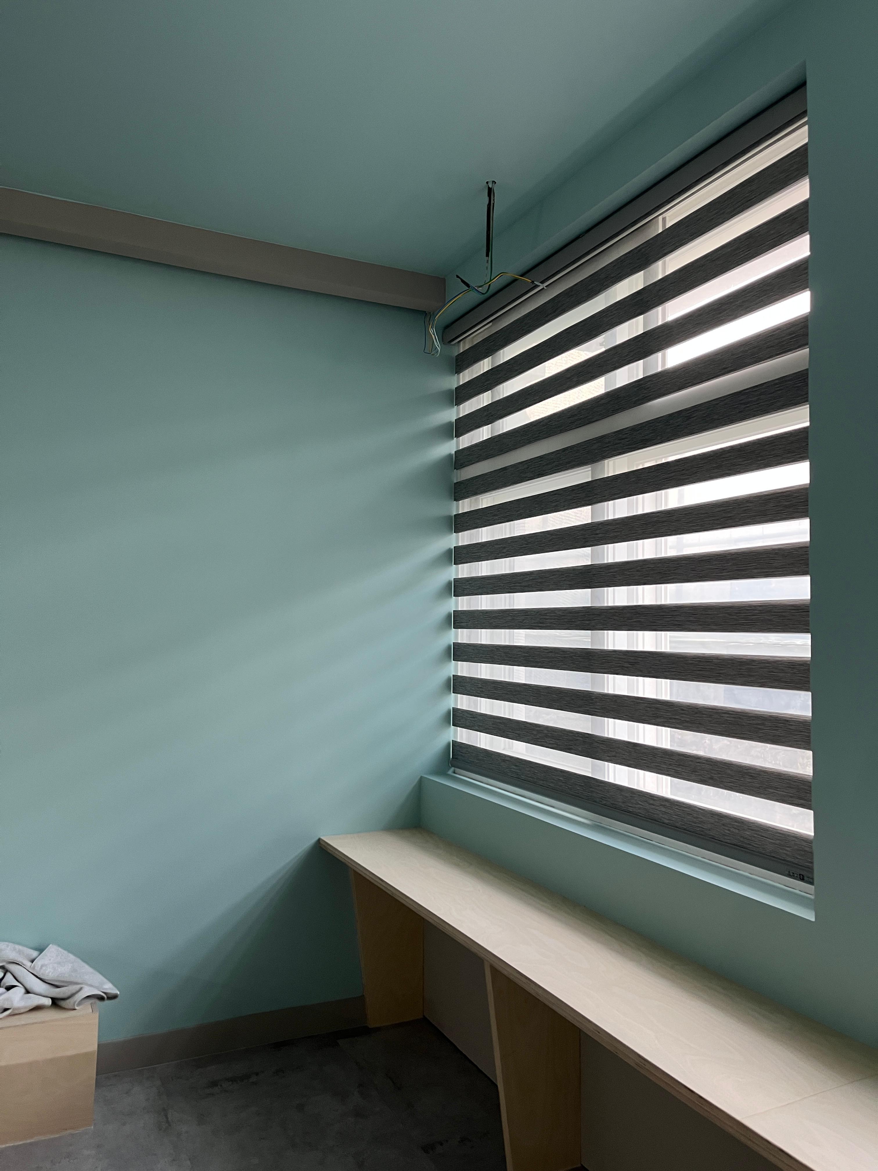 방염처리까지 완료된 그레이컬러의 콤비블라인드가