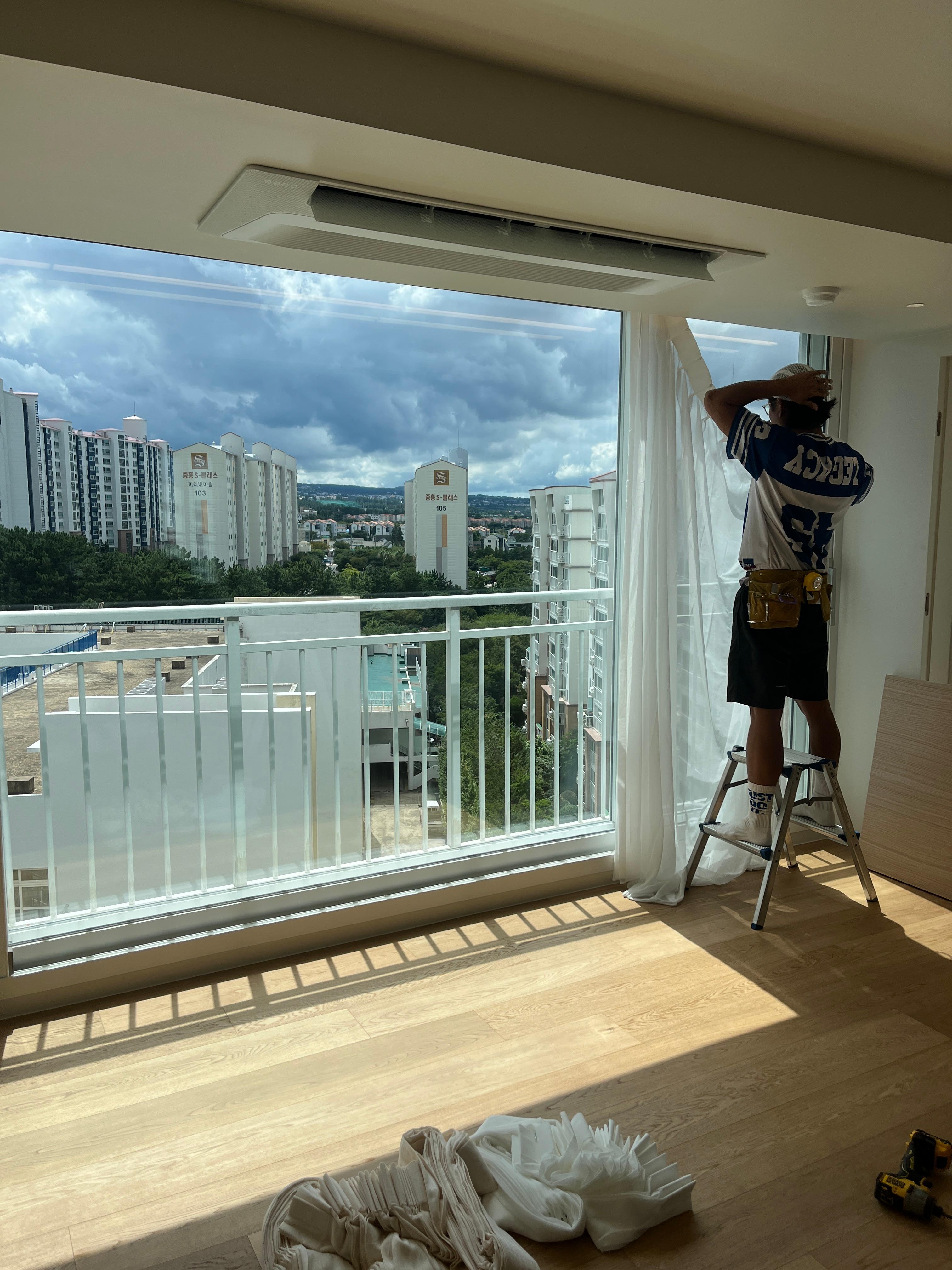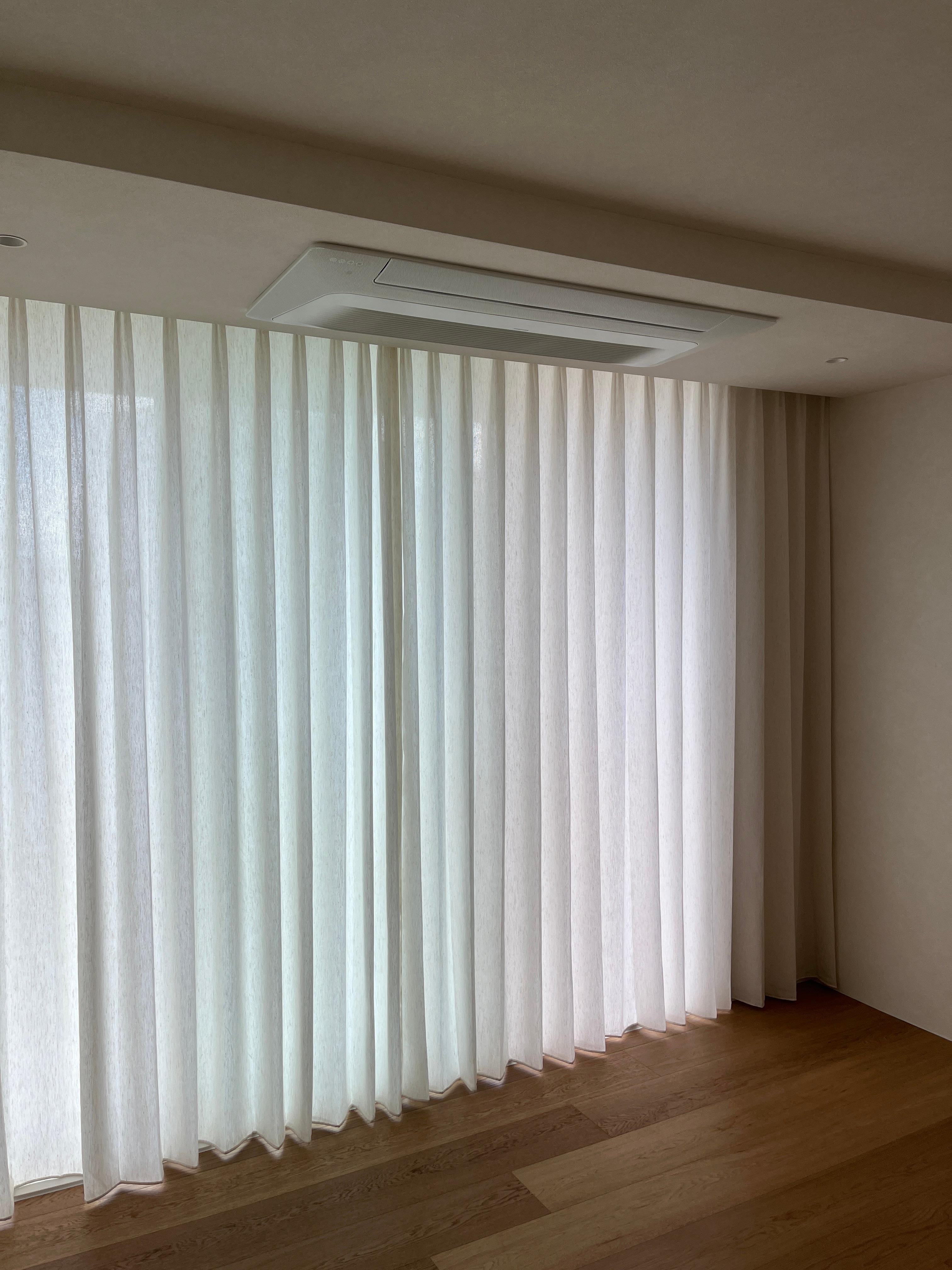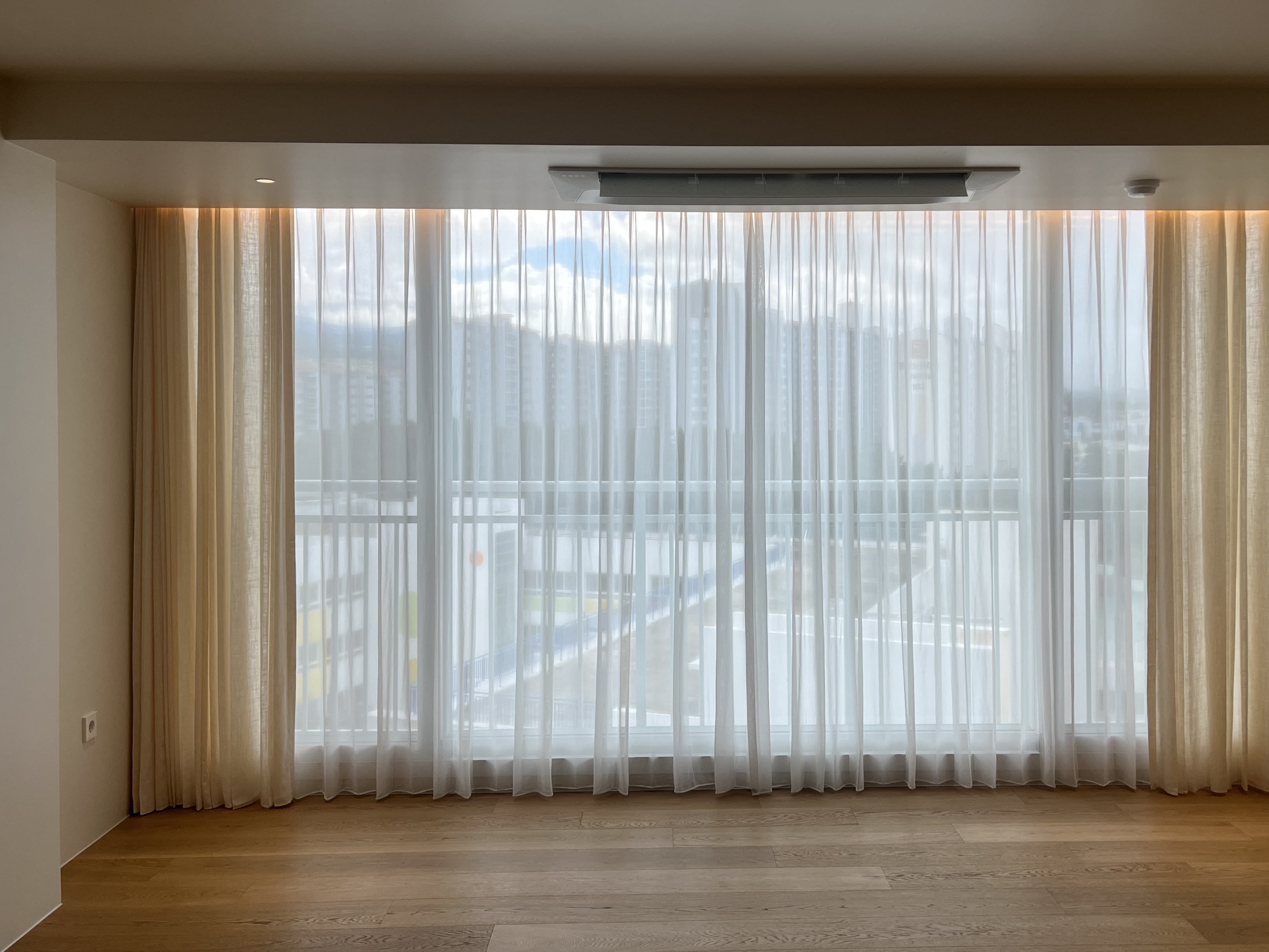 거실 공간은 라이트린넨 이중 커튼으로 설치했어요.