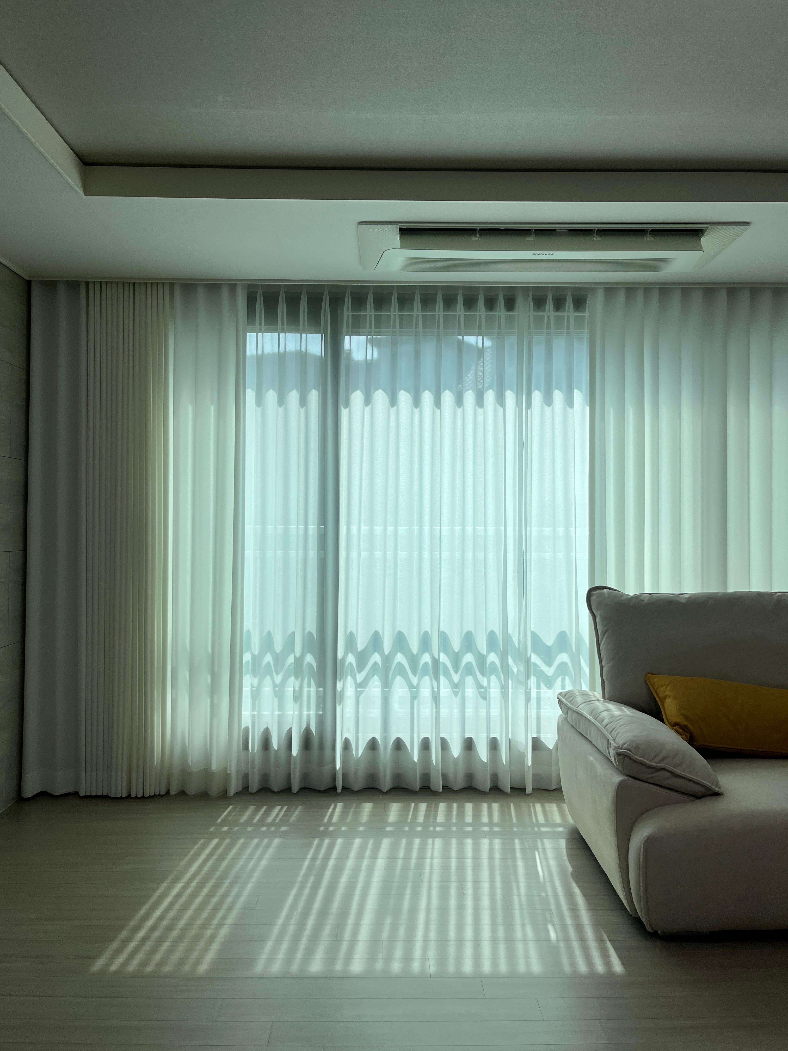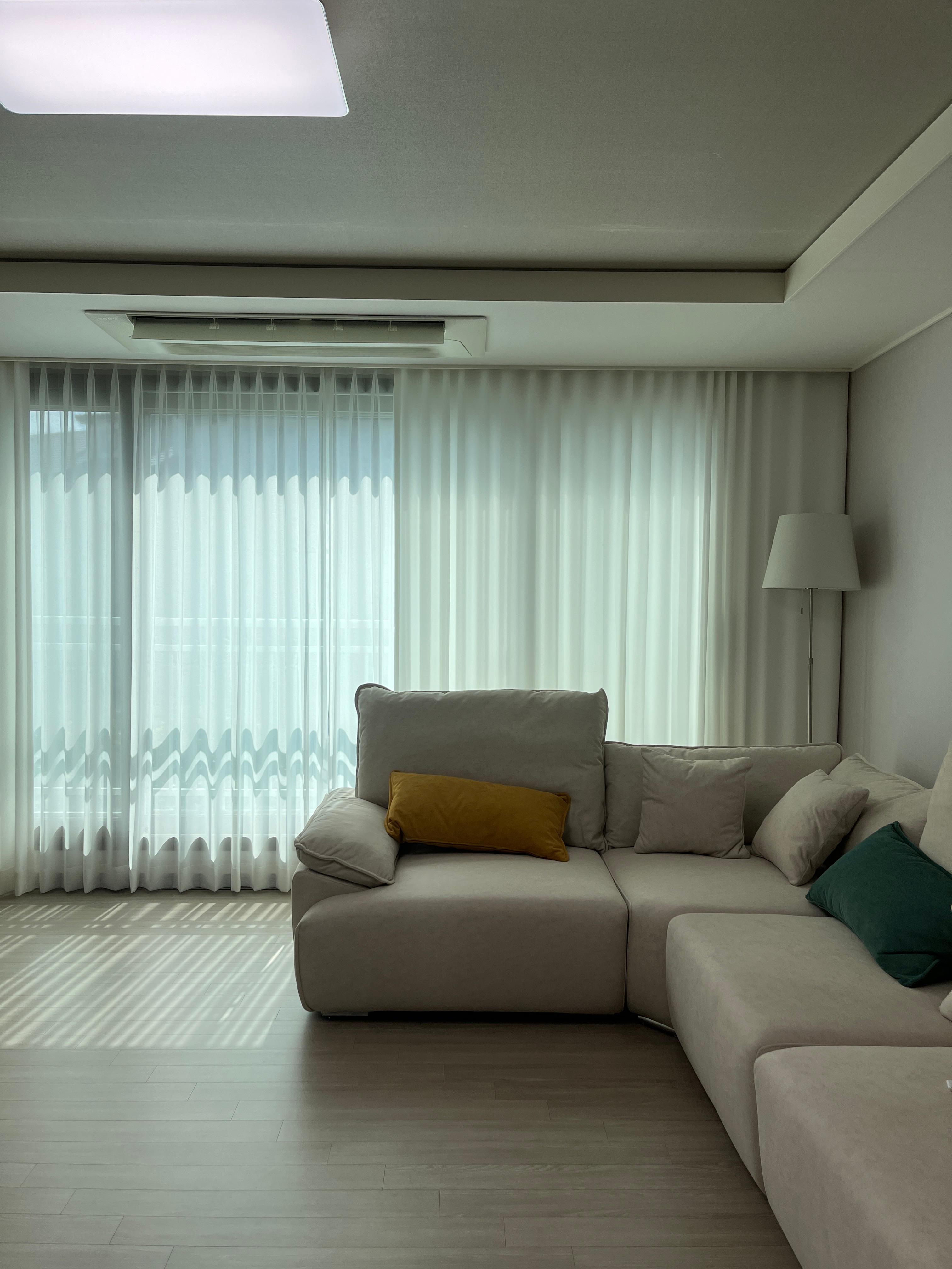 거실은 고운 텍스쳐가 매력적인 화이트 겉지와 속지로 진행했어요.